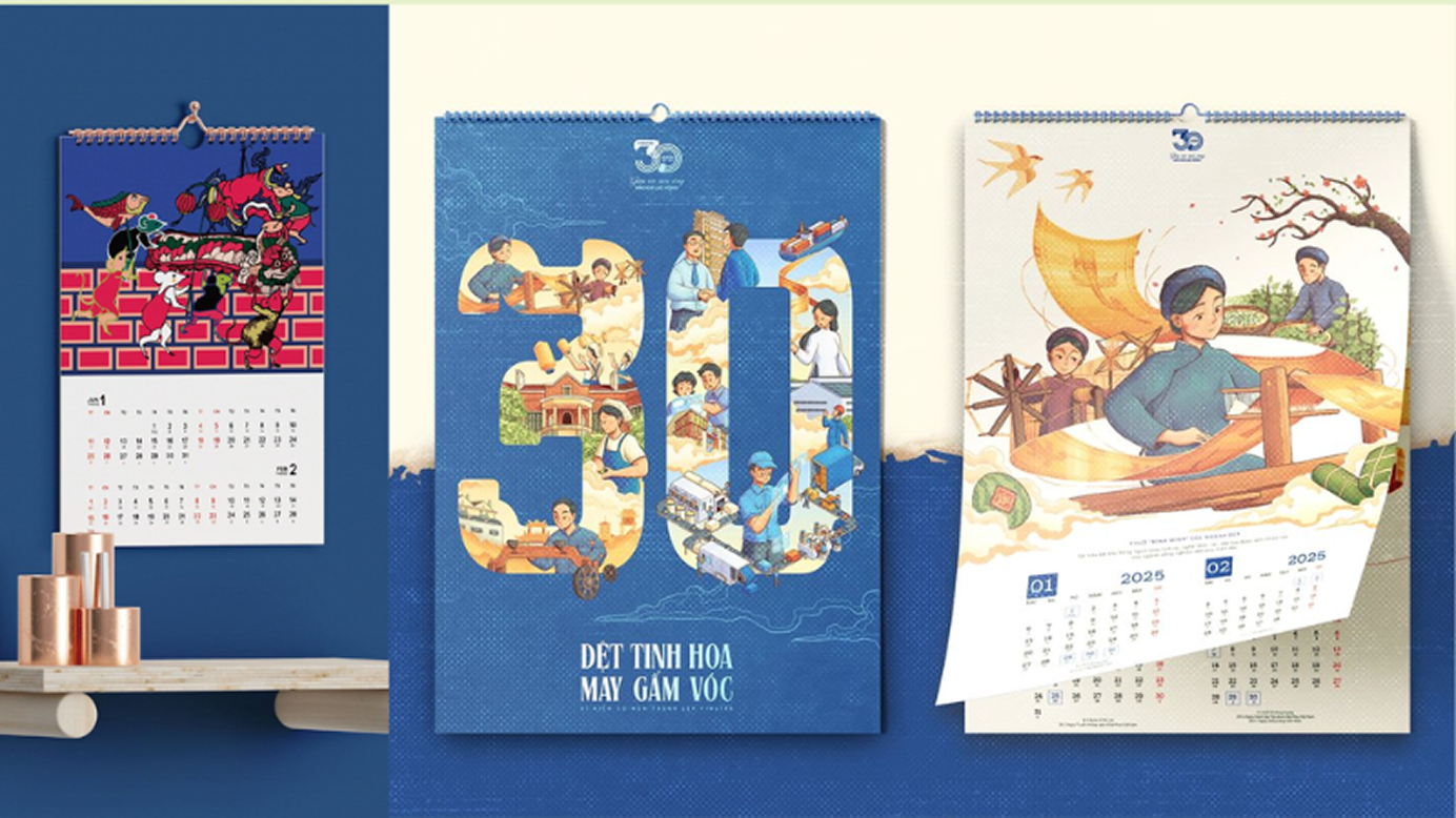 Ví dụ thực tế: Khi thiết kế lịch cho công ty cổ phần Dệt may Hà Nội (HANOSIMEX), chúng tôi tập trung vào yếu tố cốt lõi, hành trình đi cùng những con người tại HANOISIMEX với tông màu xanh dương – trắng, kết hợp thông tin về công ty theo từng tháng. Điều này tạo giá trị gia tăng cho người dùng và củng cố hình ảnh chuyên nghiệp của doanh nghiệp.